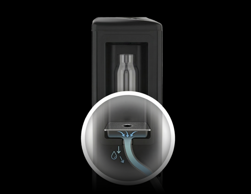 No refilling. No maintenance. At every dispense, a vortex action prevents dirt and residue from accumulating.