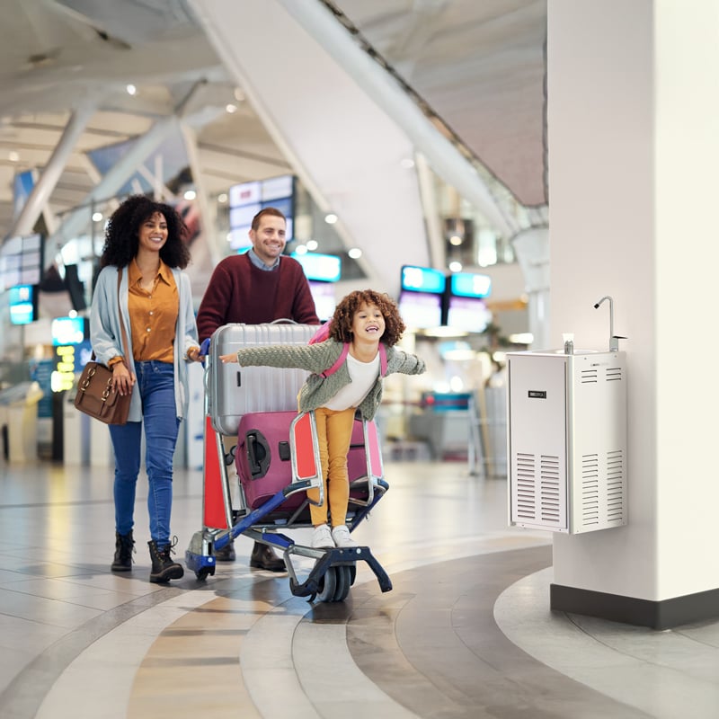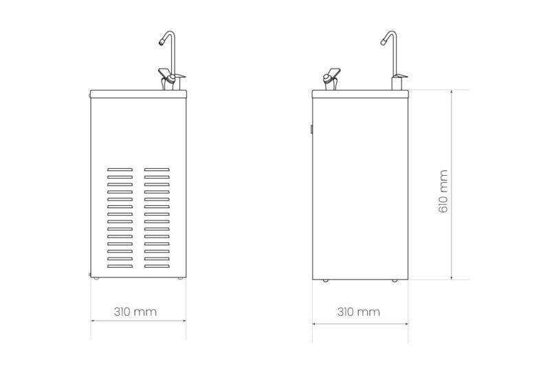 La fontanella d’acqua refrigerata per luoghi con flussi elevati come: scuole, palestre, aereoporti e musei, in cui è necessario garantire una continua erogazione.